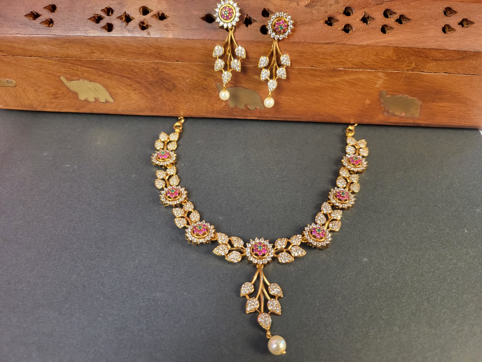 Be the first to review “Floral model Stone Necklace with earring Set”