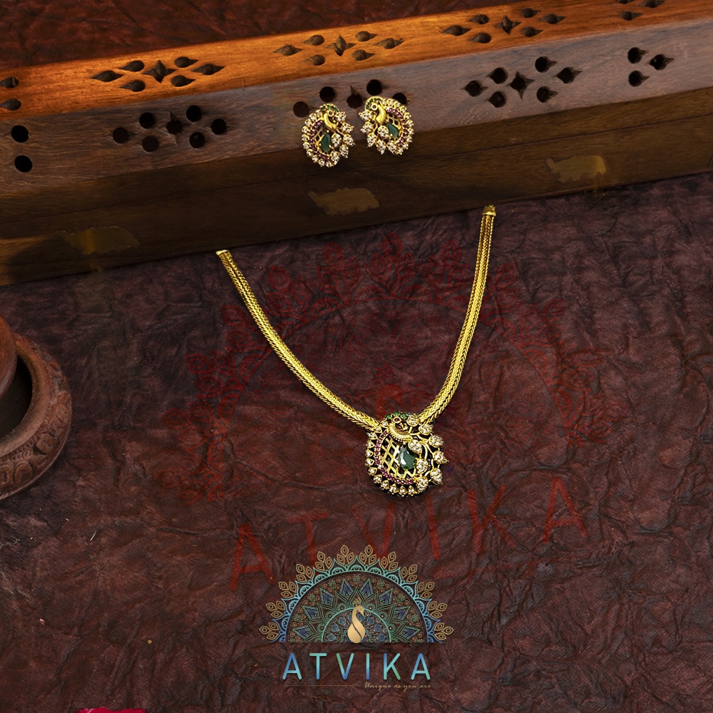 Exquisite Gold Plated Peacock Necklace is a stunning blend of elegance and minimalism. Adorned with beautifully arranged green, white, and pink Kemp stones, the intricate peacock design captures attention without being overwhelming. The vibrant stones are delicately set, adding a touch of color and charm to the gold-plated finish. Crafted with premium quality, this necklace is perfect for those who appreciate subtle yet sophisticated jewelry for any occasion.