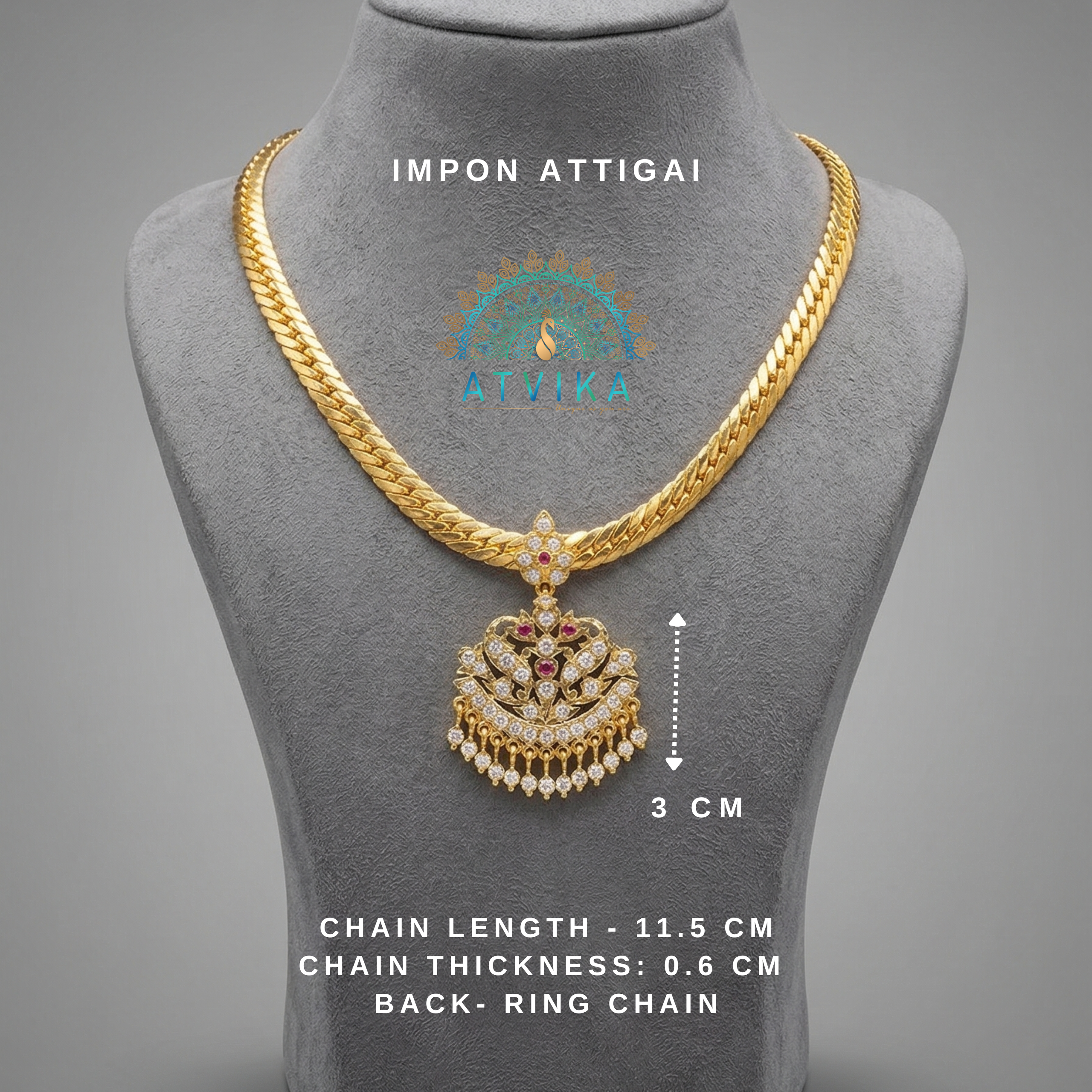 Product type: Traditional Annam Impon Attigai with Stone Pendant